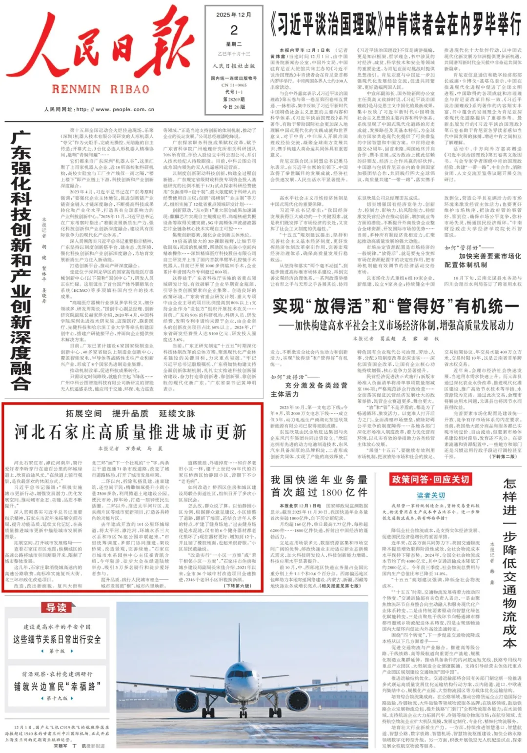 按:12月2日,人民日报头版刊发《拓展空间 提升品质 延续文脉 河北石家庄高质量推进城市更新》文章,深入报道石家庄市近年来拓展空间布局,提升功能品质,延续文化记忆,在高质量推进城市更新中描绘城市发展新图景。现予以转发。