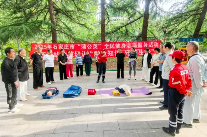 石家庄市“蒲公英”科学健身指导团志愿服务活动以“群众需要什么,体育志愿就提供什么”为导向,针对不同群体定制服务内容。杨式国家竞赛套路四十式太极拳,三十二式太极拳,运动损伤预防、心肺复苏术,太极八法五步,二十八式太极扇,陈式五十六式太极拳,健身操舞《全城热练动起来》等志愿服务活动现场井然有序,热火朝天。