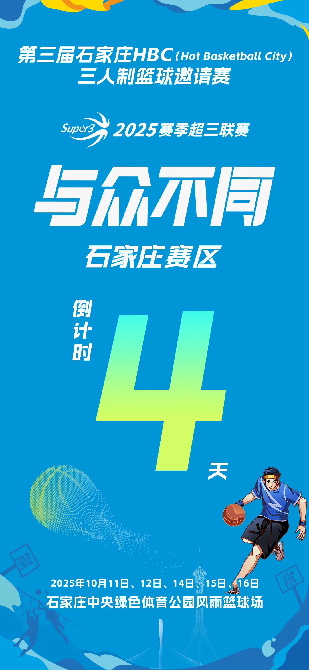 倒计时4天 | 第三届石家庄HBC(Hot Basketball City)三人制篮球邀请赛10月11日开赛!