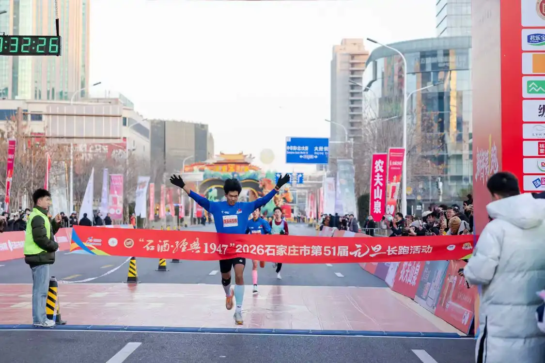起跑仪式上,石家庄市优秀运动员、东京奥运会女子铅球冠军、全运会女子铅球五连冠得主巩立姣,石家庄市优秀运动员、巴黎奥运会女子拳击冠军常园,石家庄市双向登顶珠穆朗玛峰勇士栾钰堃,河北省体育局党组成员、副局长田建功,石家庄市政府副市长张峰珍,石家庄市政府副秘书长张东生,石家庄市体育局党组书记、局长任维维,石家庄市体育局副局长乔茜,石家庄市桥西区副区长马卿,石家庄市国投集团党委副书记、副董事长、总经理张志强,河北野人体育文化发展有限公司总经理李桐等领导嘉宾共同发令,拉开了本届元旦长跑的序幕。经过激烈角逐,杨昊烨以32分26秒获得迎新跑(10km)男子组冠军,李梦瑶以35分29秒摘得女子组桂冠。
