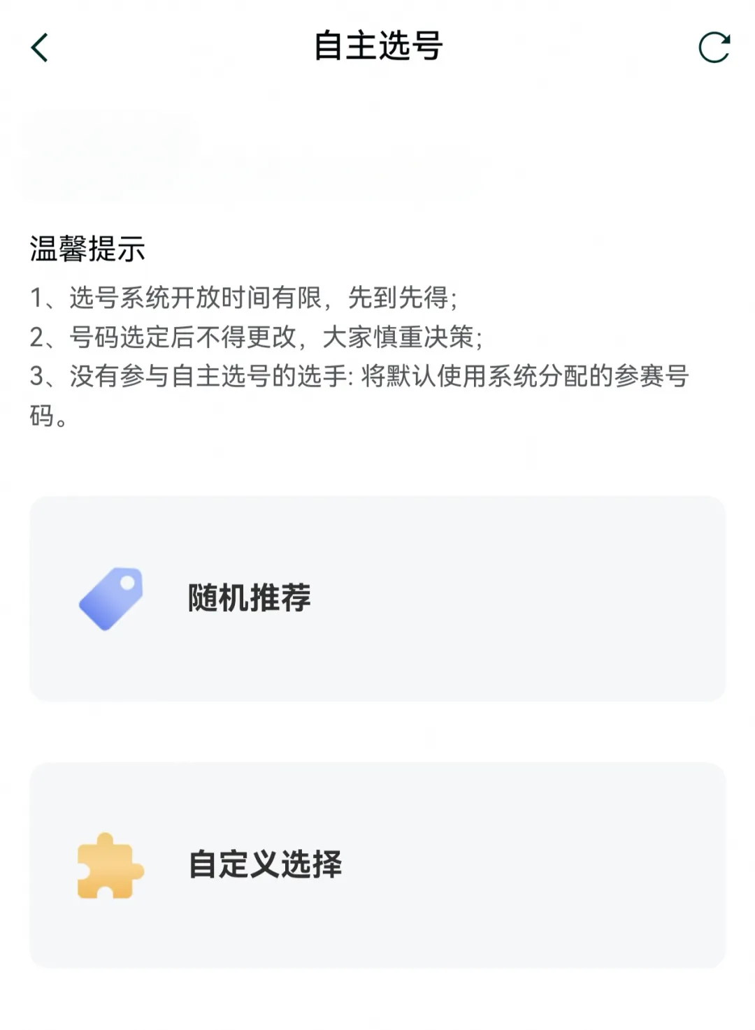 → 如选定参赛号码