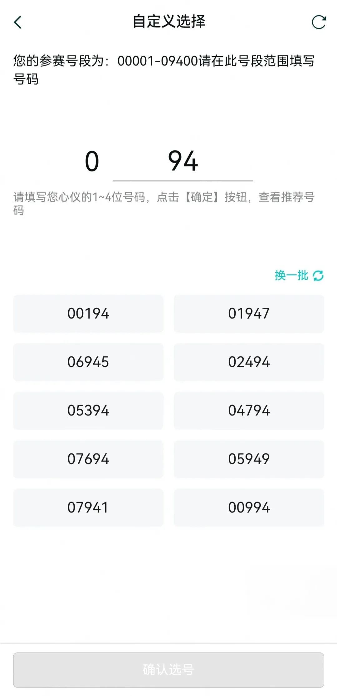 选择自己钟意的参赛号码