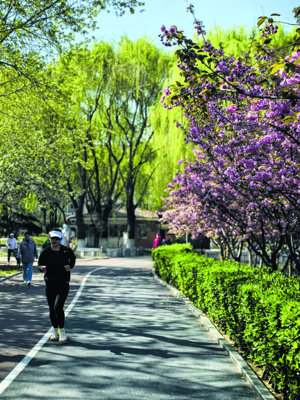 早晨7点,在世纪公园,45岁的上班族张晓薇已经跑完了第三圈。她戴着耳机,脚步轻快,经过樱花林时,禁不住抬头看一眼头顶的“花云”。