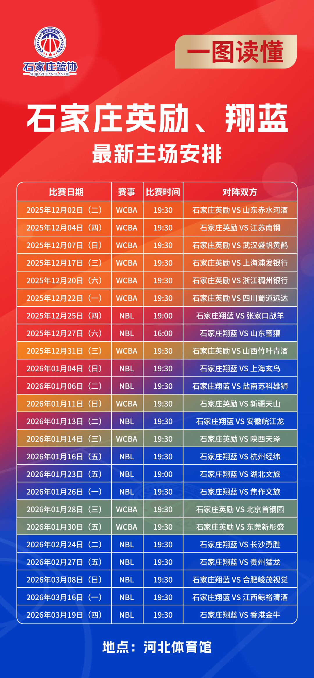 一图读懂!石家庄英励&翔蓝主场赛程,寒冬热血不打烊
