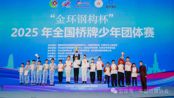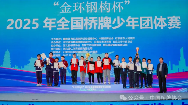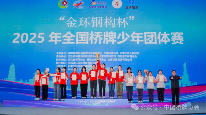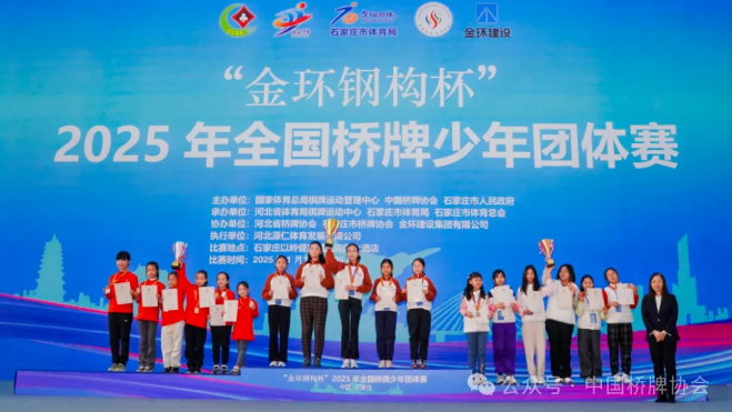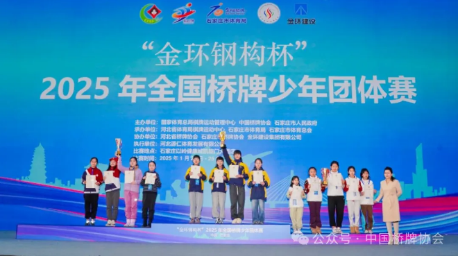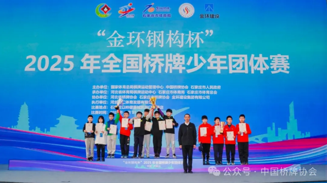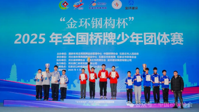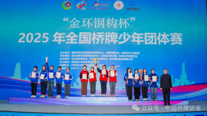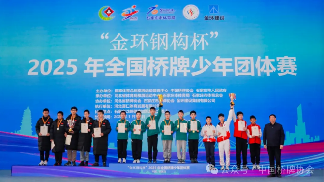 1月25日,“金环钢构杯”2025年全国桥牌少年团体赛在石家庄落下帷幕,各组别冠亚季军队伍产生。